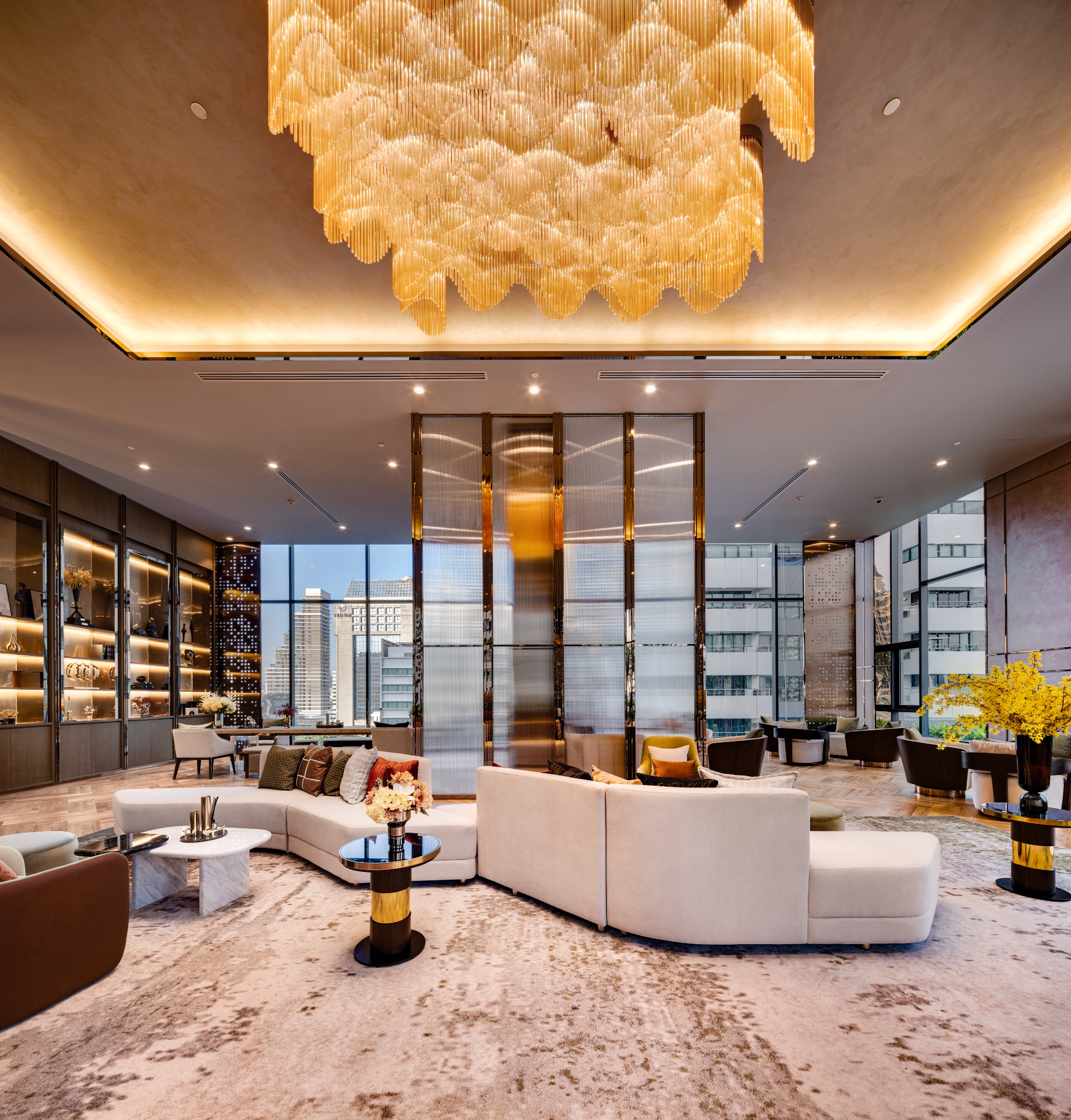 At Supalai Icon Sathorn, the vision crafts an urban sanctuary where luxury and sustainability coexist. Taking inspiration from natural landforms, the design uses fluid forms, warm copper tones, veined marble, and timber surfaces. Residents access hotel-quality amenities—rooftop pool, spa, co-working spaces, and private theatre—designed to foster well-being, community, and belonging within the city’s skyline.