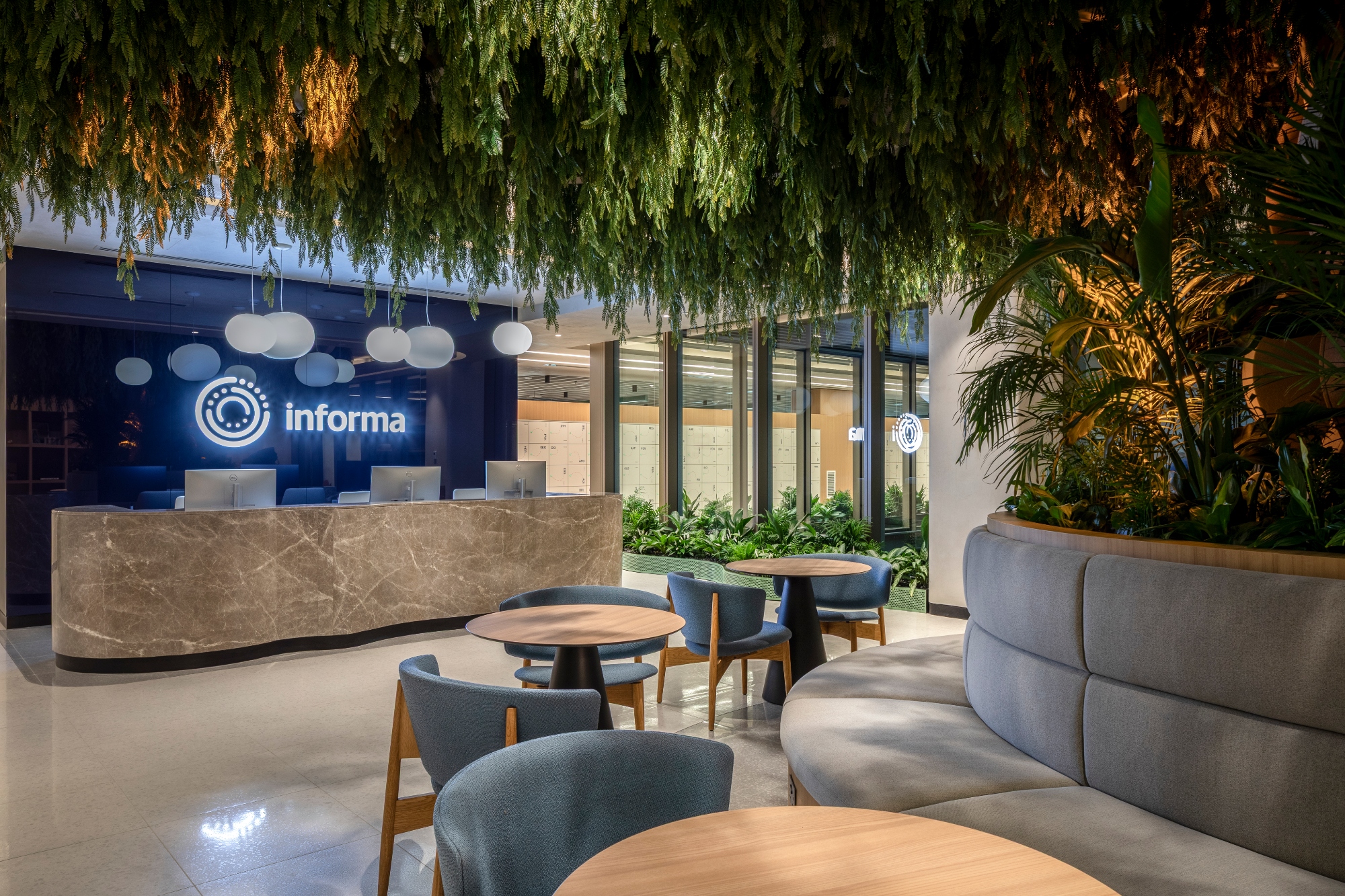 At Informa Dubai, the design merges efficiency with a hospitality lounge ambience. The space integrates collaborative hubs and social zones to encourage connection and creativity. Natural light, tactile finishes, and integrated technology ensure seamless functionality. Every area is inviting and energised, redefining the office as a destination rather than obligation.